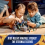 • Het LEGO Marvel Opkomst van de Domo (76156) bouwspeelgoed neemt kinderen mee binnen in het ruimteschip van de Eternals en laat ze daarna eindeloze gevechten voeren tussen de superheldenminifiguren en de Deviant wezens.