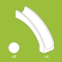 Rolt de knikker snel of langzaam? De glijbaan vertraagt de snelheid van de knikker bij het naar beneden rollen, maar door de speciale vorm draait de knikker veel sneller om zijn eigen as. Door de tweekleurige knikkers is het effect goed te zien. De glijbaan is drie stenen hoog en kan overal in de knikkerbaan worden geplaatst. Het is het beste om de glijbaan zo te plaatsen dat je de tweekleurige knikker om zijn eigen as kunt zien draaien.