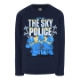 Stoere donker blauwe LEGO City pyjama met lange mouwen. Op de voorzijde staat een opdruk van LEGO City politie minifiguren en de tekst 'go go go! The Sky Police'. De broek heeft een gestreept patroon. De achterzijde is effen.