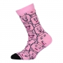 Zachte en comfortabele LEGO sokken met 3 paar per pakket. Een roze, zwart en grijs paar sokken met verschillende LEGO opdrukken.