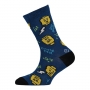 Zachte en comfortabele LEGO sokken met 3 paar per pakket. Het eerste paar is donkerblauw met een opdruk van sterren, bliksem en LEGO hoofdjes, het tweede paar is lichtgrijs met een opdruk van een LEGO minifiguur hoofdje en het derde paar is zwart met een opdruk van een LEGO gamer.