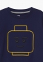 Mooi donkerblauw LEGO sweatshirt met lange mouwen, op de voorzijde een in goud geborduurd LEGO gezicht.De achterzijde is effen.