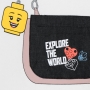 Mooi wit LEGO sweatshirt met lange mouwen, op de voorzijde voorzien van een print met een LEGO sleutelhanger en een schoudertasje met de tekst: "Explore The World". Het tasje is aan de bovenkant voorzien van een ritssluiting. De achterzijde is effen.