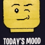 Mooi donkerblauw LEGO T-shirt met korte mouwen. Op de voorzijde staat een opdruk van een LEGO minifiguurhoofdje wat kan lachen of een knipoog kan geven wanneer u uw hand over de pailletten veegt. En de tekst 'Today's Mood'. De achterzijde is effen.