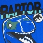 Stoer blauw LEGO Jurassic World T-shirt met lange mouwen. Op de voorzijde staat een opdruk van een dinosaurus raptor. De achterzijde is effen.