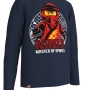 LEGO Ninjago T-shirt met lange mouwen. Op de voorkant staat een opdruk van ninja Kai en de tekst: 'Ninja master of Spinjitzu'. De achterzijde is effen.