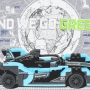 Cool lichtgrijs LEGO T-shirt van LEGO Speed Champions met lange mouwen. Op de voorzijde staat een opdruk van 2 LEGO Speed Champions auto's gebaseerd op auto's uit de ABB FIA Formula E Championship, een wereld bol met verschillende race steden en de tekst: 'And we go green'. De achterzijde is effen.