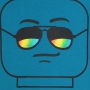 Stoer turquoise LEGO T-shirt met korte mouwen. Op de voorzijde staat een opdruk van een LEGO gezicht met zonnenbril en op de linker mouw de opdruk Be Your Self. De achterzijde is effen.