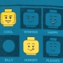 Stoer turquoise LEGO T-shirt met lange mouwen. Op de voorzijde een opdruk van verschillende LEGO gezichtensuitdrukkingen. De achterzijde is effen.