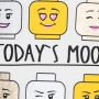 Mooi wit LEGO T-shirt met korte mouwen. Op de voorzijde staat een opdruk van verschillende LEGO gezichtsuitdrukkingen en de tekst 'Today's Mood'. De achterzijde is effen.