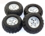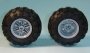 Lichtgrijze velgen inclusief bijpassende zwarte ballon banden. Gebruikt in set 8289, 8048, 8274, 7636, 8296, 8527, etc... De banden kunnen goed gebruikt worden om bijvoorbeeld vrachtwagens te bouwen!