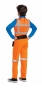 Dit LEGO Emmet kostuum voor kinderen bestaat uit een pak en een riem. Het pak ziet er uit als een oranje broek met een oranje veiligheidsvest, vastgemaakt aan een blauwe trui. Het pak is te sluiten aan de achterkant met klittenband.