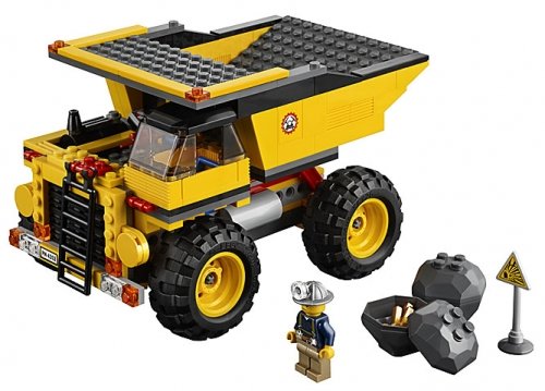 Voor grote klussen heb je groot materiaal nodig. Deze machtige mijnbouwtruck kan de zwaarste klussen aan. Laad hem vol met rotsblokken, rijd er de mijn mee uit, plaats de dynamiet en blaas het goud uit de grond! Inclusief mijnwerker minifiguur.