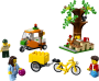- Wat zit er in de doos – alles wat kinderen nodig hebben om een picknicktafel, een parkgedeelte met een boom en bloemen, een fiets met aanhanger en een hoveniersbusje met 3 wielen te bouwen, plus 3 minifiguren en 2 eekhoornfiguren