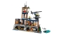 - Wat zit er in dit LEGO bouwpakket? – een bouwbaar eiland met een speelgoed gevangenis aan de rand van een klif, een politieboot, een rubberboot, een speelgoed helikopter, minifiguren van 3 agenten en 4 gevangenen, plus dieren figuren van een politiehond en een haai