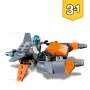 Ontdek interessante nieuwe planeten met de Cyberdrone. Neem plaats in de cockpit, schakel de stuwraketten in en vlieg de ruimte in met de robotminifiguur voor gewaagde avonturen! Zodra je bent geland, bouw je hem om tot een geweldige cybermecha, een coole cyberscooter of iets wat je helemaal zelf hebt bedacht. Beleef urenlang plezier in de ruimte met deze leuke 3-in-1 set!