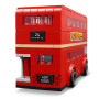 • De dubbeldekkerbus heeft draaibare wielen en transparante ramen, plus stickers van een kentekenplaat, het routenummer, de bestemming en een advertentie