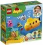 • Het LEGO DUPLO Avontuur met onderzeeër bevat een vrolijk gekleurde speelgoedduikboot en een vis, die allebei bubbels produceren als ze onder water worden gehouden, en een bouwbare boog met zeewier.