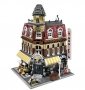 Built completely on minifigure scale! Includes 3 townspeople minifigures! Street base measures 10" x 10" (25.4 cm x 25.4 cm) and building stands over 14" (36 cm) high! Realistic features include opening front door, caf © tables with umbrellas, striped awning, "Hotel" sign, trash can, street light, bench and more! Top two stories lift off to reveal inner rooms and staircases! Connectors at base of model allow you to join 4 Café Corners together!