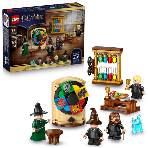 Beleef de Sorteerhoedceremonie op Kasteel Zweinstein uit Harry Potter en de Steen der Wijzen opnieuw met deze LEGO Harry Potter bouwset (76460) voor kinderen.