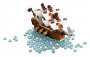 - Het schip heeft een verhoogd dek aan het achtersteven, een kajuit voor de kapitein, zes kanonnen, drie masten, een kraaiennest en tal van elementen waaronder bedrukte zeilen en een vlag.
