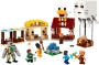 - LEGO videogameset – als piglins projectielen afvuren vanuit hun Ghast-ballon, 'ontploft' de fontein en moeten kinderen de dorpelingen en Steve's gefrituurde kiprestaurant en craftinghut verdedigen