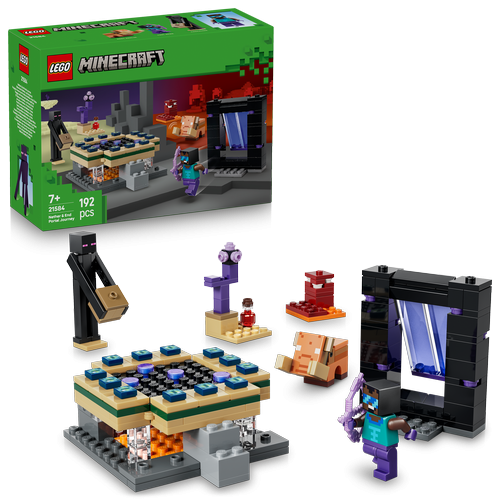 Beschikbaarheid Online status NIEUW Verwacht! Verwacht: 1 januari 2026 Winkel Gorinchem Niet in voorraad Neem Minecraft spelers mee op een offline game-avontuur met het Reis naar de Nether en het End-portaal (21584) speelgoed voor kinderen vanaf 7 jaar. Ga door de portalen om een model van elk bioom te verkennen en beleef avonturen met een Minecraft minifiguur van een coole held, een Enderman en een babyhoglin. Dit bouwpakket voor kinderen bevat een End-portaal en een Nether-portaal met functies voor toegang tot kleine modellen van elk bioom. Authentieke accessoires, waaronder een betoverde boog en een genezingsdrankje, geven inspiratie voor eindeloze creatieve avonturen met herkenbare omgevingen en Minecraft personages. Deze set is een geweldig cadeau voor gamers, LEGO bouwers en fans van de Minecraft videogame en rollenspellen. En met de LEGO Builder app kunnen kinderen vol vertrouwen bouwen: inzoomen, draaien in 3D en hun voortgang bijhouden met de eenvoudig te volgen digitale instructies.