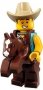 LEGO minifiguur verkleed als een cowboy te paard. Inclusief cowboyhoed en oranje stand.