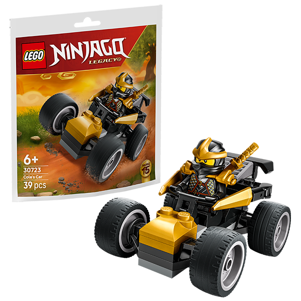 Kinderen vanaf 6 jaar kunnen actie op de weg naspelen met een miniversie van een supercoole ninja-auto, die wordt bestuurd door een minifiguur van Cole met een gouden zwaard.
