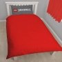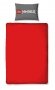 Dekbedovertrek en kussensloop met een afdruk van LEGO Ninjago! En aan de andere zijde heeft het dekbedovertrek een print in rood met LEGO noppen.
