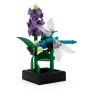 Dit bouwmodel is kleine displayset met daarop een bouwbare libelle met transparante vleugels en een lavandel plant met lavendelkleurige bloemetjes.