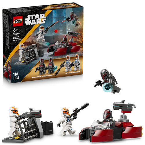 • Speel het Beleg van Mandalore uit Star Wars: The Clone Wars na met dit Battle Pack (75449), waarin Mandalorian Super Commando's het opnemen tegen 332nd Clone Troopers