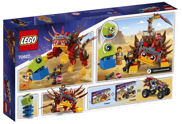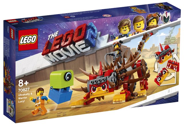 Trek ten strijde tegen het buitenaardse wezen met DE LEGO FILM 2 70827 Ultrakatty en Strijder Lucy! en red Emmet. Ultrakatty heeft een cockpit met plaats voor een minifiguur, een verstelbare kop die kan worden omgebouwd met 3 verschillende gezichtsuitdrukkingen en een verstelbare staart en poten. Dit fantastische bouwspeelgoed is inclusief Lucy en Emmet minifiguren plus een van stenen gebouwd buitenaards wezen met kauwende kaken en een ronddraaiend oog, om allerlei scènes boordevol actie uit DE LEGO FILM 2 na te spelen. - Inclusief Lucy en Emmet minifiguren die nieuw zijn vanaf januari 2019, plus een van stenen gebouwd buitenaards wezen met kauwende kaken en een ronddraaiend cycloop-oog.  - Ultrakatty heeft een cockpit met plaats voor een minifiguur en teugels, een verstelbare kop met 3 verschillende gezichtsuitdrukkingen en een verstelbare staart en poten. - Ook inclusief Lucy's kruisboog.  - Accessoire-elementen: Lucy's pijlkoker en stopbordelement.  - Combineer Ultrakatty met 70829 Emmets en Lucy's vlucht buggy en creëer de Ultra-vluchtbuggy! - Speel de leukste scènes uit DE LEGO FILM 2 na.  - Ultrakatty is ca. 8 cm hoog, 21 cm lang en 8 cm breed.